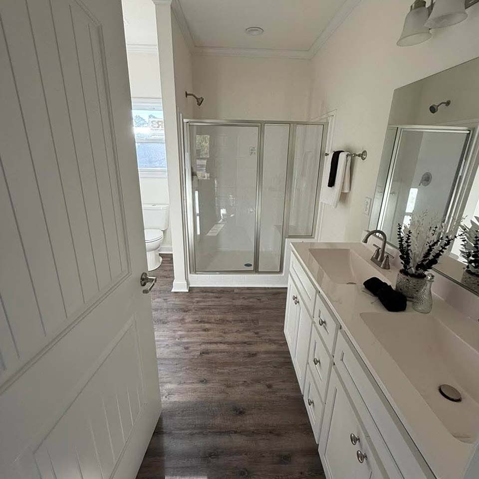 - In the master bath, imagine spa-like features – warm tile and flooring tones, and double vanities for convenience.