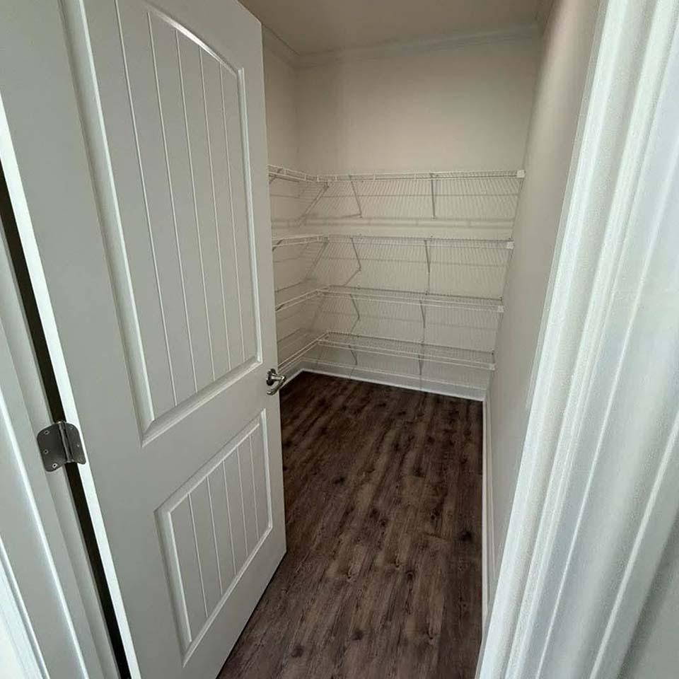 - The walk-in pantry keeps everything organized, reducing clutter.